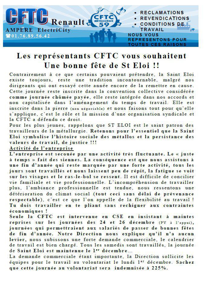 Vendredi dernier à l’heure du déjeuner, la section CFTC a d’ailleurs tenu à « convier ses adhérents au pot de l'amitié dans le cadre de la fête de Saint Eloi . Un moment chaleureux et convivial au local syndical CFTC pour échanger dans un atmosphère détendue ».