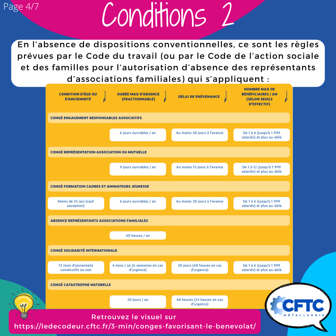 Source, et fiche complète  : https://ledecodeur.cftc.fr/3-min/conges-favorisant-le-benevolat/