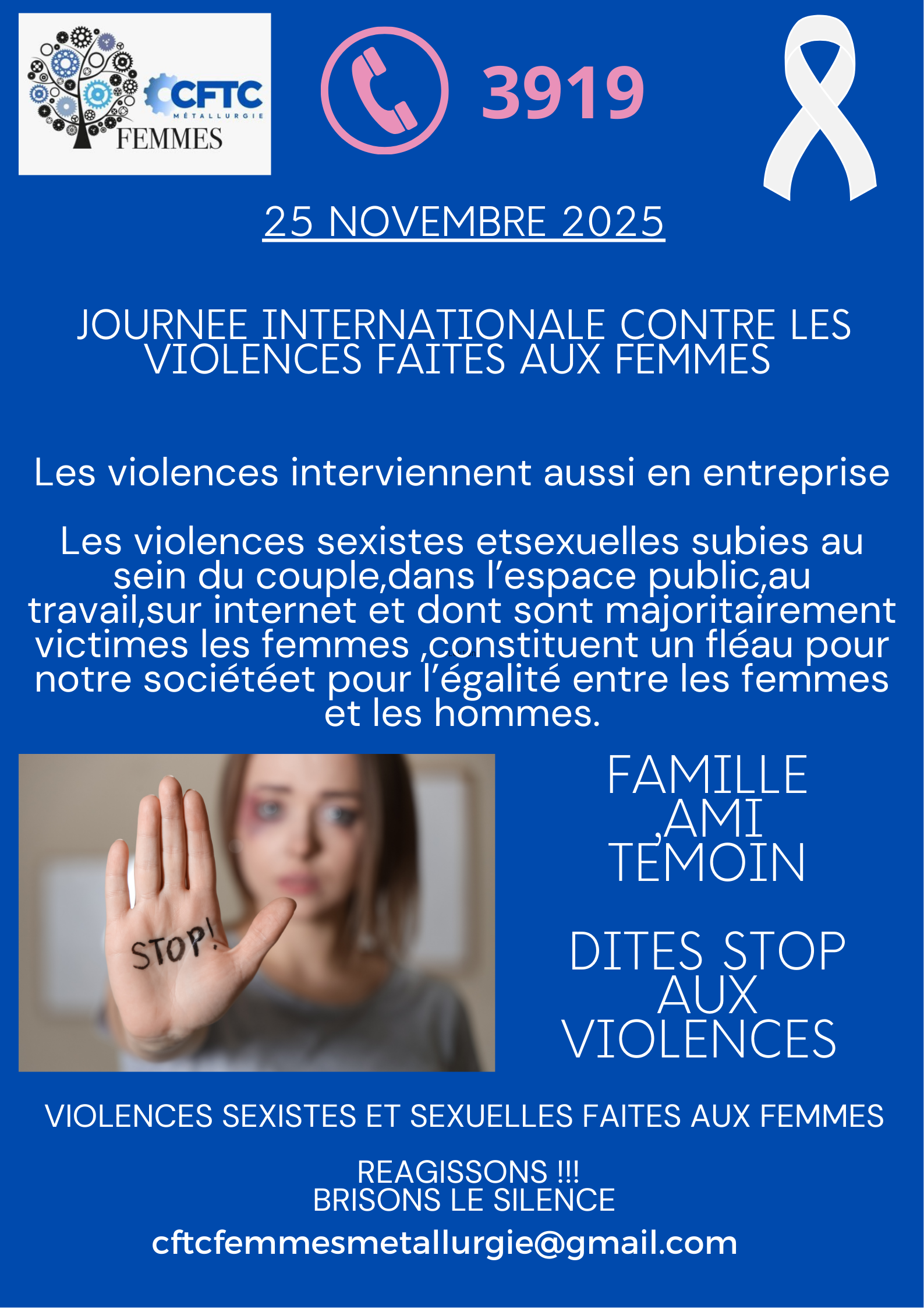 Aujourd'hui, 25 novembre, c'est la journée mondiale contre les violences faites aux femmes. A cette occasion, la Commission Cftc Femmes Métallurgie et le groupe Fédération Métallurgie CFTC MétaCom s'associent pour vous présenter quelques planches et liens utiles sur le sujet: