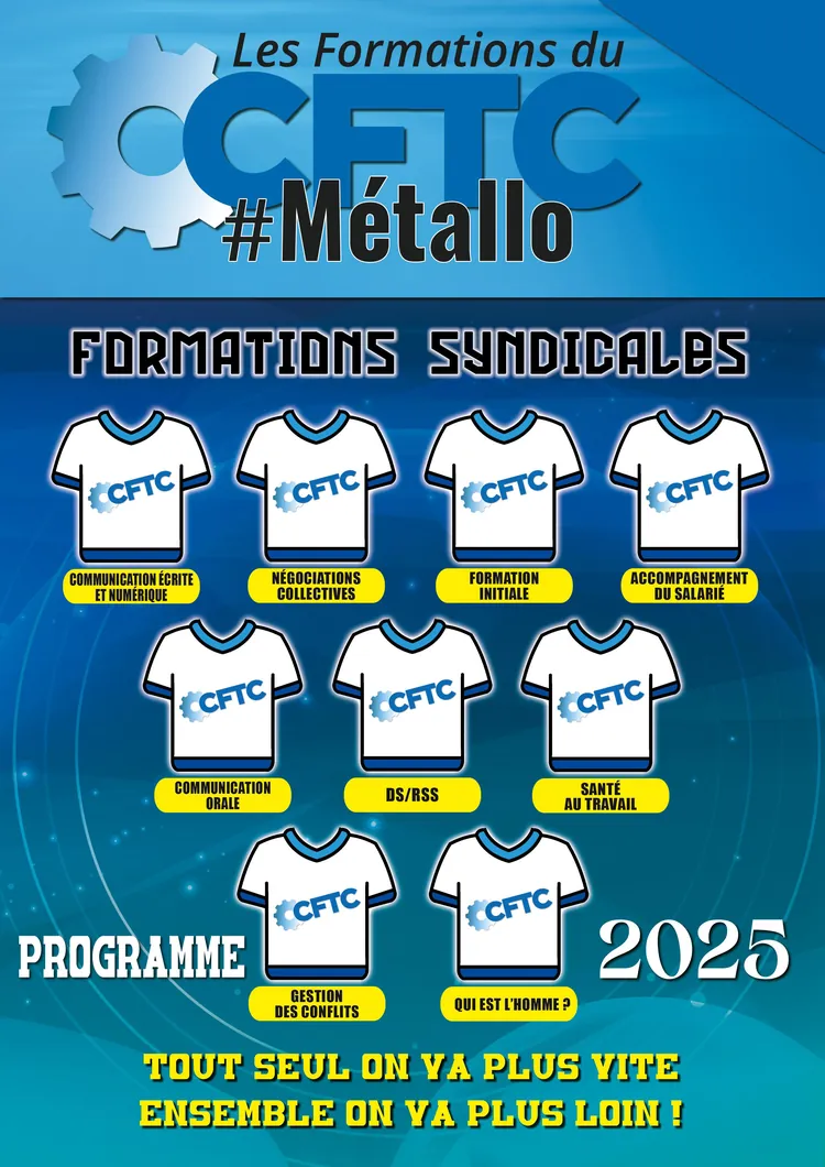 Vous avez peut-être déjà découvert ce fond de panneau publié en affiche centrale dans ce numéro du magazine Le Métallo. Il est né d’une initiative de Thierry Legrand, président du syndicat de la métallurgie du Loiret. Une identité visuelle a été créée afin de mettre en lumière les actions de la CFTC, et d’harmoniser notre communication sur les panneaux syndicaux.